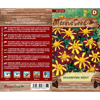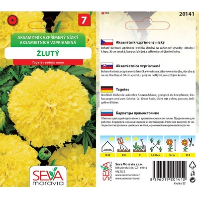 Kvalitní MORAVOSEED Aksamitník nízký plnokvětý, žlutý, semínka za 20 Kč.