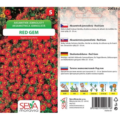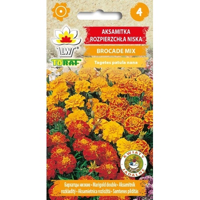 \nTagetes patula L. / Aksamietnica rozložitá Popis:Bohatě kvetoucí letnička s aromatickými listy určená na záhonové výsadby, obruby, do okenních truhlíků a ozdobných nádob....