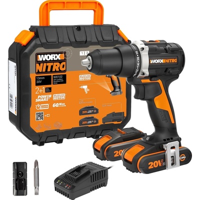 Aku Šroubovák WORX WX102 Bezkartáčový 20V 60 Nm 13 mm Akumulátorový aku šroubovák je vybaven bezkartáčovým motorem a je vybaven LED diodou, která zlepšuje viditelnost...