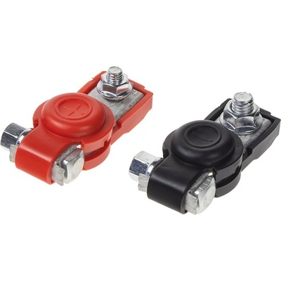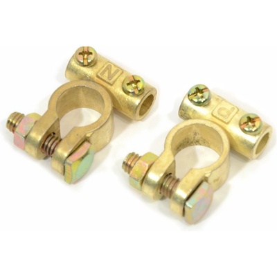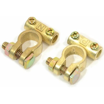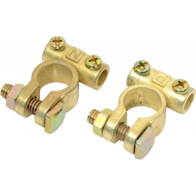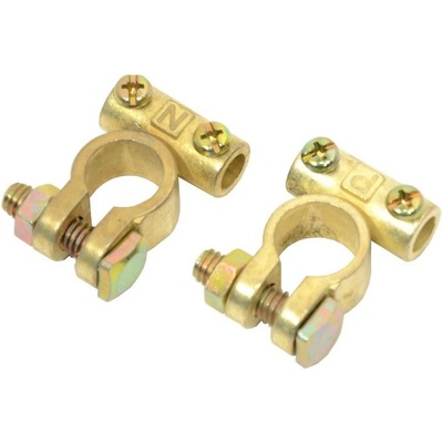 Svorky (+ a -) ze slitiny mosazy pro připojení startovacího akumulátoru k záložnímu zdroji. Vhodné pro zdroje zakončené kabelovýmm okem, při použití běžného akumulátoru.