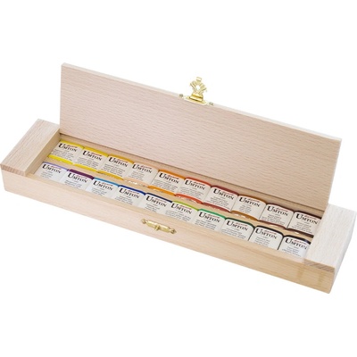 Sada akvarelových barev v praktickém dřevěné kazetě 36x2,6ccm od českého výrobce barev UMTON. Barvy určené pro profesionální malíře, jejich kvalita je srovnatelná s olejovými...