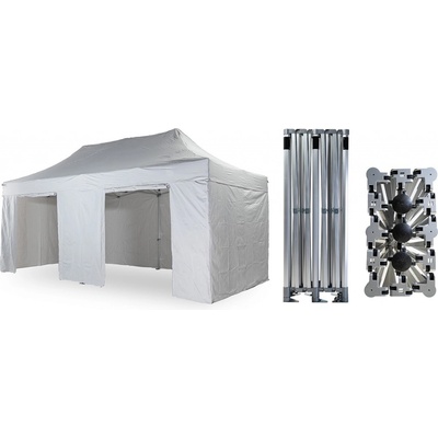 Praktický zahradní párty stan s nůžkovou konstrukcí, díky které stan velmi snadno a rychle postavíte a opět složíte. Stan Vám poskytne dostatek stínu v parných dnech, ochranu...