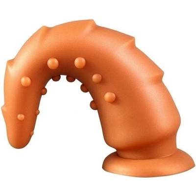 Poddajné dildo měděné barvy vyrobené ze silikonu se strukturovaným povrchem a silnou přísavkou. Celková délka 18,5 cm, použitelná délka 17,4 cm a průměr 2,3–5,5 cm. Dostupné ve...
