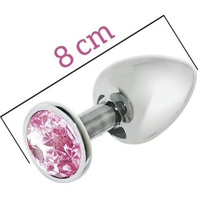 Stříbrný anální šperk Mai No.73 METAL PLUG M SILVER vyrobený z kovu se zářivě broušeným růžovým kamenem.