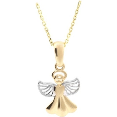 Zlatý přívěsek z lesklého 14 karátového zlata ve tvaru andělíčka. Jednoduchá kombinace bílého a žlutého zlata. Tento přívěsek je vhodný dárek třeba k narození vašeho...