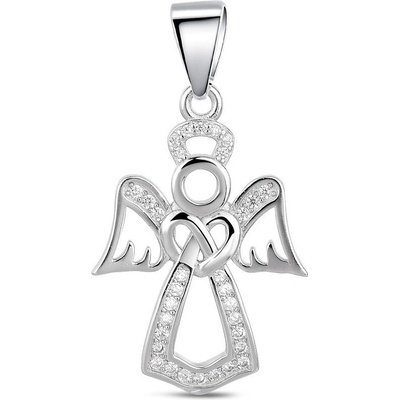 Stříbrný přívěsek andílek. Anděl zdobený čirými zirkony.Přívěsek je vyroben ze stříbra s jakostním označením 925/1000 s povrchovou úpravou rhodium, které chrání stříbro před...