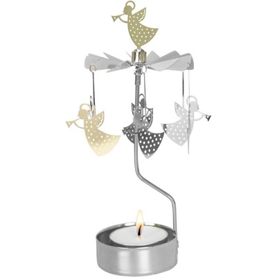 Oblíbený kovový svícen Andělské zvonění s motivy andělů, vám doma vykouzlí tu pravou sváteční atmosféru. Díky stoupajícímu teplému vzduchu ze zapálených svíček se roztočí...