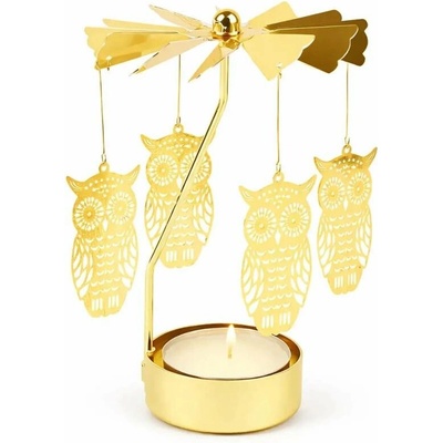 Zlaté andělské zvonění s motivem sov, velikost 8 × 13 cm. Po zapálení svíčky se roztočí a vytvoří efektní světelné odlesky. Stylová lesní dekorace i krásný drobný...