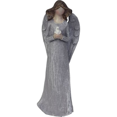 Keramikaportal.eu|Anděl na svíčku,mrazuvzdorný keramický se srdíčkem v ruce| Bílá patina|Výška 62cm