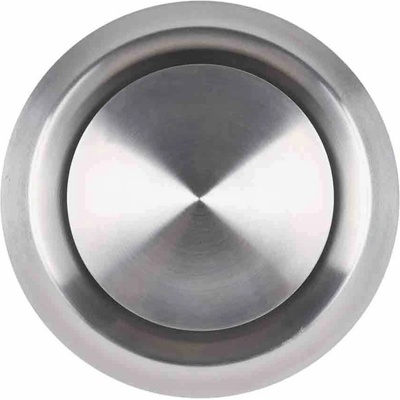 Nerezový anemostat pro kruhové potrubí průměru 100 mm, konstruován pro odvod vzduchu, regulovatelný ventil na průtok vzduchu.