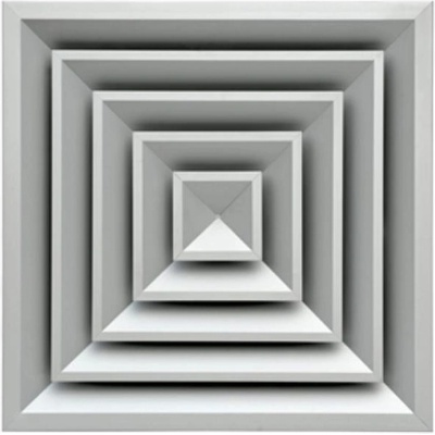 Vířivý anemostat s pevnými lamelami, volitelná konfigurace výtlaku nebo sání, s demontovatelnou středovou částí. Dle provedení lamel je možné vytvořit požadovaný obraz proudění...