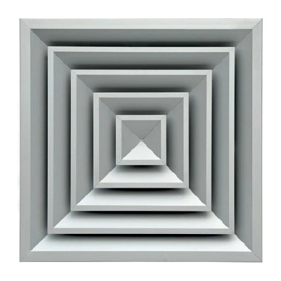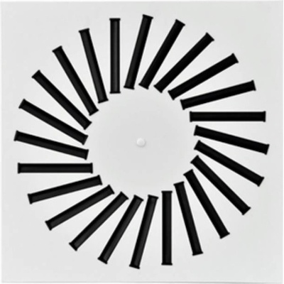 Vířivý anemostat s pevnými lamelami, volitelná konfigurace výtlaku nebo sání, s demontovatelnou středovou částí. Dle provedení lamel je možné vytvořit požadovaný obraz proudění...