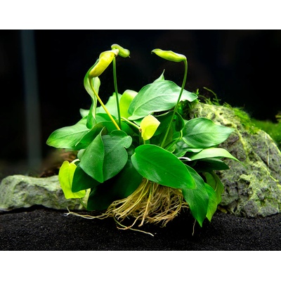 Trsovitá rostlina s tuhými srdčitými listy. Nenáročná, ideální pro začátečníky. Vhodná i k cichlidám. Původ: z rovníkové Afriky Čeleď: Araceae Morfologie: Má kožovité, velmi...