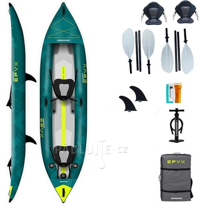 Aquadesign Epyx 380 je ideální nafukovací kajak jezera a moře, ale i na lehčí divokou vodu. Dodáváno v kompletním balení - můžete hned vyrazit na vodu: V ceně kajaku Epyx: 2...
