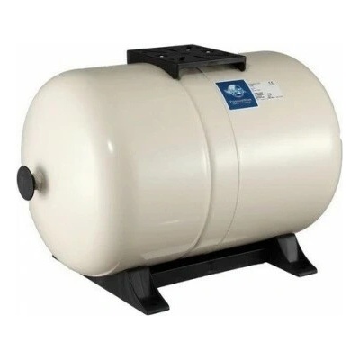 Horizontální expanzní nádoba pro pitnou vodu k domácím vodárnám a rozvodům, s vyměnitelnou membránou pro hygienický provoz.