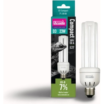 Arcadia D3 Compact Reptile Lamp 23W 7.0 UVB Tato kompaktní zářivka od Arcadia představuje špičku ve své kategorii. Compact Reptile Lamp 23W se 7% UVB a 30% UVA je vhodná pro...