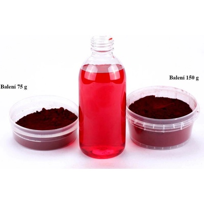 Červená prášková barva. Potravinářská prášková barva červená. Použití: Část obsahu prášku rozpusťte v malém množství vody nebo alkoholu a toto přidávejte postupně do...