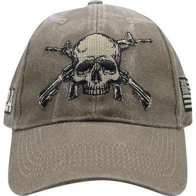 Kvalitní čepice SKULL CROSSED GUNS s vyšívaným motivem, stahovací pásek na zadní straně čepice, materiál100% bavlna, předepraná.