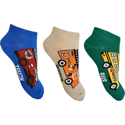 Sada 3 párů chlapeckých kotníkových ponožek, motiv DOPRAVNÍ PROSTŘEDKY