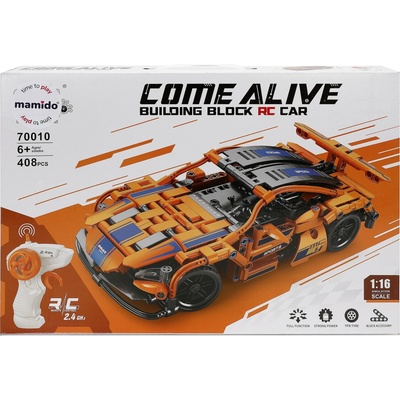 Stavebnice Auto oranžové RC na dálkové ovládání. 319 dílků. Rozměry 18,6x8,8x5,6 cm. Pistolový ovladač. Frekvence 2.4GHz. Bateriový pack 3.7V 350mAh Li-ion do auta součástí,...