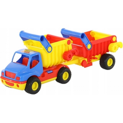 Barevný plastový náklaďák s návěsem o délce 58 cm přináší hodiny zábavy doma i na pískovišti. Má odolnou konstrukci, vyklápěcí korbu dozadu a pohyblivé zadní čelo pro snadné nakládání a vykládání. Vyráběno v kvalitě Wader quality toys pro bezpečné a dlouhotrvající...