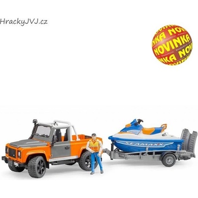 Model Auto LAND ROVER DEFENDER s návěsem, minibagrem JCB a figurkou BRUDER 02593 Auto LAND ROVER DEFENDER terenní Otevíratelné dveře a přední kapota Řízení volantem přes střechu auta Zadní tažený návěs s možností sklopení zadního čela Nájezdy na vozík Pásový minibagr...