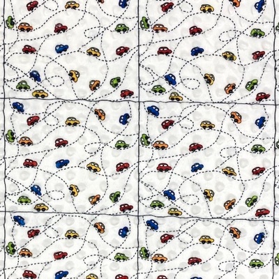 Bílé minky s vytlačovanými ťuplíky, "DOT" minky, motiv autodráha. Látka má složení 100% polyester. Šířka metráže 140 cm. Minky je velmi příjemné a hebké, vhodné na deky, dětské...
