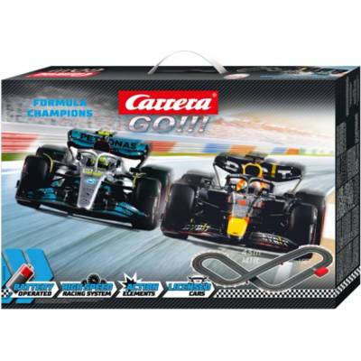 Autodráha Carrera GO 63518 F1 Autodráha Carrera GO!!! dlouhá 4,3m s auty F1 Ferrari a Mercedes obsahuje skokánek, rovinky, zatáčky, přemostění, napájecí díl na baterie a další...