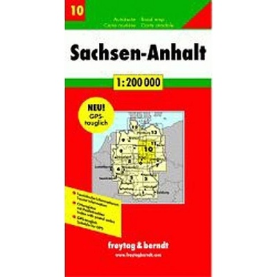 Jednostranná automapa Saska-Anhaltska. Mapa s bohatým turistickým obsahem je svým měřítkem vhodná pro poznávání regionu autem či na kole. Silniční síť je označena čísly...