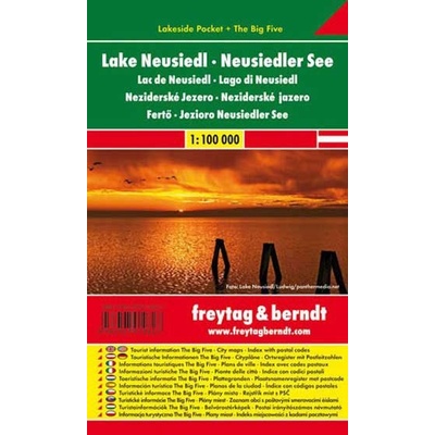 Turistická mapa Neziderského jezera v laminové úpravě. Dobře zaznačena silniční síť včetně kilometráže, dále mapa obsahuje symbolické znaky pro tábořiště, muzea, arch. památky,...