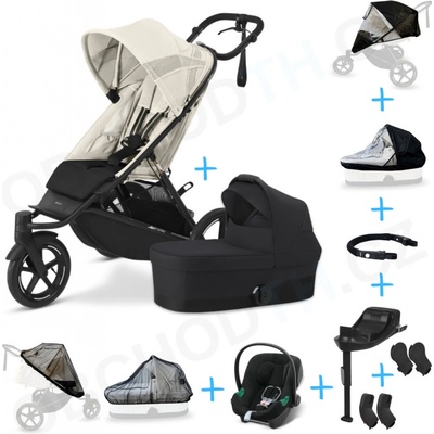 Thule Set 11v1 Urban Glide 4-wheel Black 2024 + madlo + korba Mid blue + JOMK příslušenství + autosedačka Cybex s ISOFIX základnou a adaptéry Thule