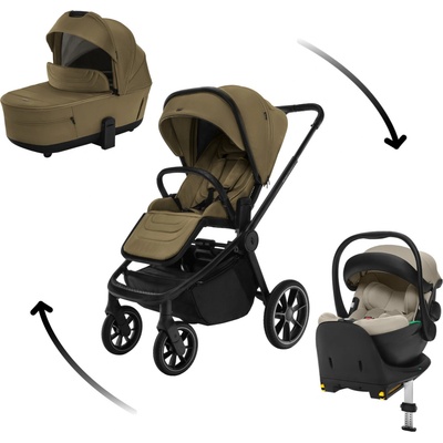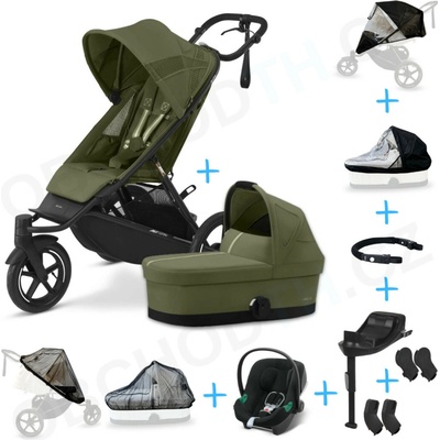 Cybex Set 10v1 Avi Spin Moss Green Gold 2025 + korba Cot S Moss Green Gold + autosedačka Cybex s ISOFIX základnou + adaptéry + pláštěnky + ochranná síť + madlo