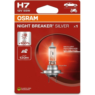 Osram NIGHT BREAKER SILVER H7 - výkonná halogenová autožárovka s optimalizovanou životností. NIGHT BREAKER SILVER vytváří až o 100% více jasu ve srovnání s min.normami,...
