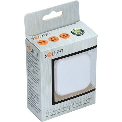Solight USB nabíjecí adaptér auto+zásuvka, 2x USB, max. 2400mA, AC 230V / DC 12V, bílý