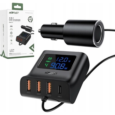 Nabíječka do auta Acefast 90W USB typ C / 3x USB / zásuvka zapalovače, PPS, PD3.0, QC3.0, AFC, FCP nabíjecí stanice (B8) Nabíječka do auta značky Acefast. Má přídavný konektor...