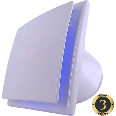 Koupelnový tichý ventilátor - ⌀ 100 mm (průměr), axiální konstrukce, max. průtok 100 m3/h, barva bílá, příkon 13 W, s modrým LED světlem, krytí IP 24, hlučnost 29 dB/A, umístění...