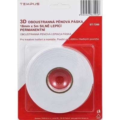 Lepící páska oboustr. pěnová, bílá. Použití pro většinu hladkých povrchů. Pro kreativní tvoření a montáže. 18 mm x 5 m