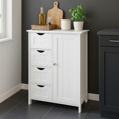 Po ruce mít utěrky, příbory i zásoby potravin – tato bílá skříňka pomůže udržet kuchyň přehlednou a uklizenou. Díky svěžímu vzhledu a jednoduchému provedení se hodí do moderní...