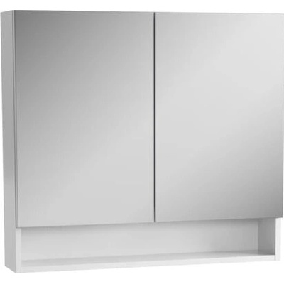 Zrcadlová skříňka s poličkou o rozměru 80x72 cm. Rám zrcadla v bílé barvě. Dvířka mají levé otevírání. Výrobek je dodáván ve smontovaném stavu.