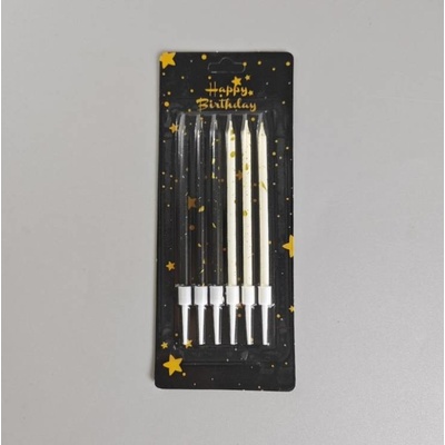 Dortová svíčka se zápichem. 24 ks svíček Použití: Součástí balení je svíčka a zápich. Svíčku vložte do zápichu a následně do dortu. Velikost svíčky: 6 cm