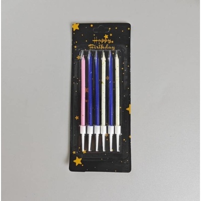 Dortová svíčka střední,se zápichem. 6ks svíček Použití: Součástí balení je svíčka a zápich. Svíčku vložte do zápichu a následně do dortu. Velikost svíčky: 6cm