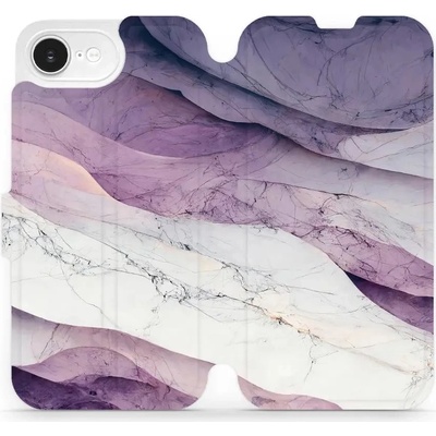 Knížkové pouzdro, obal, kryt Mobiwear na mobil Apple iPhone 16e - VP31S Bílý a fialový mramor - ochrana celého telefonu, funkce stojánku, odolná TPU vanička, magnetické...