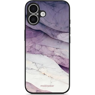 Lesklý obal, kryt, pouzdro Mobiwear Glossy na mobil Apple iPhone 16 - G028G - Bílý a fialový mramor - ochrana zad i boků telefonu, potisk co se neošoupe, tenký design, parádní...