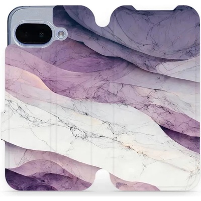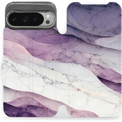 Knížkové pouzdro, obal, kryt Mobiwear na mobil Google Pixel 9A - VP31S Bílý a fialový mramor - ochrana celého telefonu, funkce stojánku, odolná TPU vanička, magnetické zavírání,...