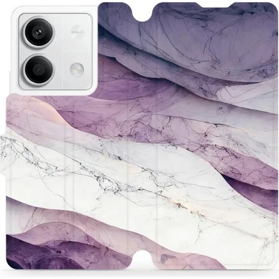 Knížkové pouzdro, obal, kryt Mobiwear na mobil Xiaomi Redmi Note 13 5G - VP31S Bílý a fialový mramor - ochrana celého telefonu, funkce stojánku, odolná TPU vanička, magnetické...