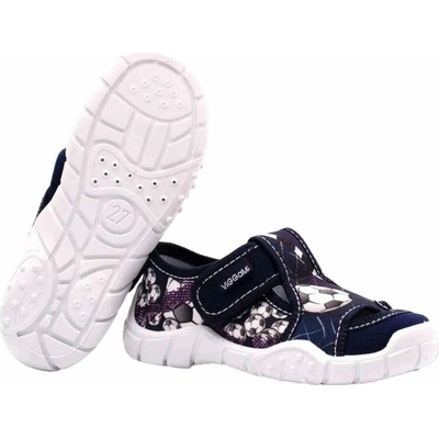 POZOR VADA NA PODRÁŽCE - PŘI VÝROBĚ SE DOSTALA NITKA DO PODRÁŽKY - PORUŠENÁ PODRÁŽKA, VIZ. FOTO Chlapecké bačkory Zetpol Krzys, zapínán na suchý zip, pevná pata, pružná...