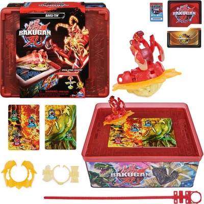 Stylový plechový box, který pojme až 6 Bakuganů, 2 balíčky 40 karet a 12 Baku-žetonů. Balení obsahuje: 1 plechový box s víkem 2 tajemné Bakugany 4 Baku-žetony 2 karty charakteru 2 karty tréninku Značka: SPIN MASTER Doporučený věk: 6+