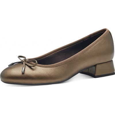 Dámské lodičky Marco Tozzi v nádherné kovově zlaté barvě. Svršek je vyrobený v imitaci hladké a měkké kůže, takže lodičky nikde netlačí a jsou pohodlné. To podporuje také nižší...