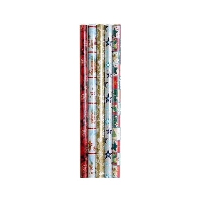 Dárkový balící papír v různých vánočních motivech a barvách, baleno v rolích 5 x 0,7 m.