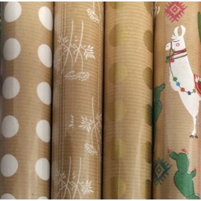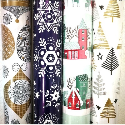 Dárkový balící papír v různých vánočních motivech a barvách, baleno v rolích 5 x 0,7 m.